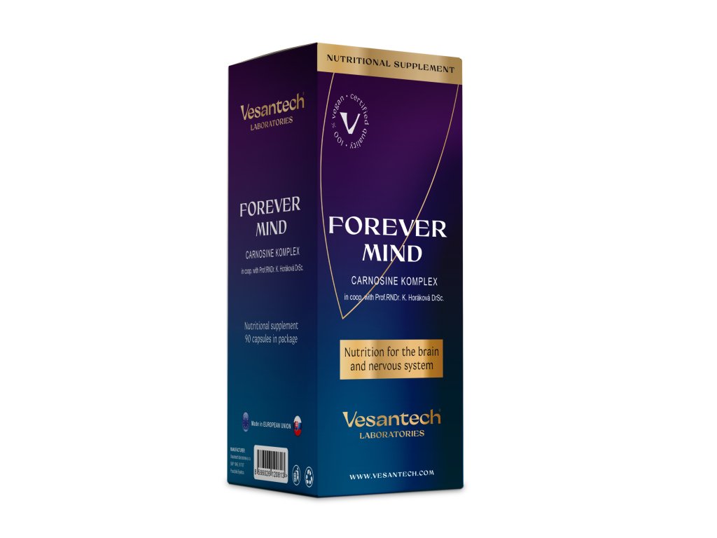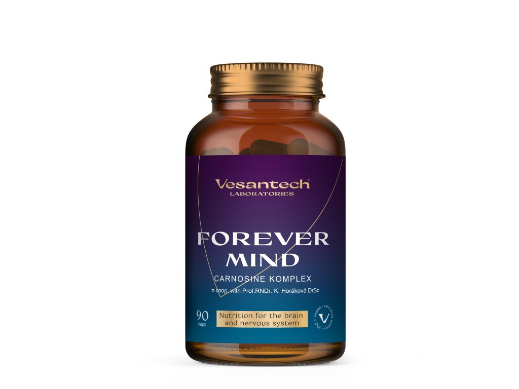 Forever Mind™ je prémiový anti-aging doplnok na báze karnozínu pre bunky, mozog a dlhovekosť. Vesantech Forever Mind™ Carnosine komplex vytvoril tím Vesantech laboratories v spolupráci s vedkyňou Prof. RNDr. Katarínou Horákovou, DrSc. Nie je to len „karnozín“. Je to synergický komplex 7 bioaktívnych látok, ktoré cielia na tri kľúčové oblasti starnutia: